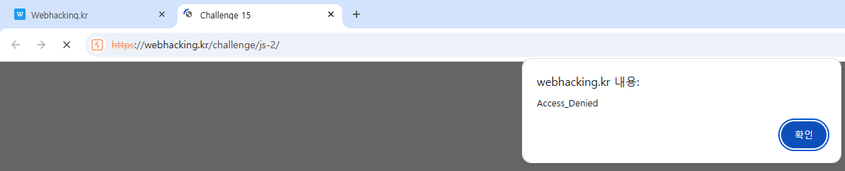 문제에 접속하면 바로 Access_Denied 경고창이 출력되면서 메인화면으로 이동된다.
