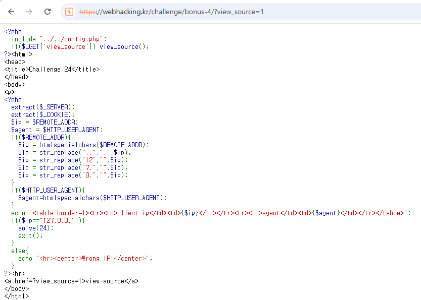 내 ip와 agent 정보가 뜨면서 Wrong IP! 라는 문자열이 출력된다.