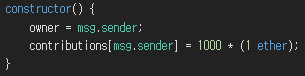 배포자를 owner로 설정하고 owner의 초기 기여금을 1000 ETH로 설정한다.