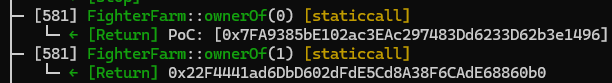 assertEq(_fighterFarmContract.ownerOf(1), _DELEGATED_ADDRESS);