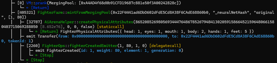 _fighterFarmContract.mintFromMergingPool(to, "_neuralNetHash", "original", [uint256(1), uint256(80)]);