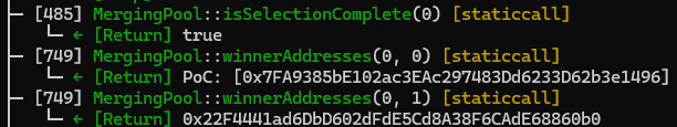 assertEq(_mergingPoolContract.winnerAddresses(0, 1) == _DELEGATED_ADDRESS, true);