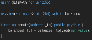 또한 payable을 사용해 msg.value만큼의 이더를 컨트랙트에 저장한다.