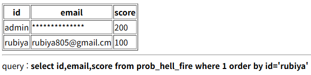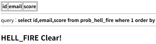 $query = "select id,email,score from prob_hell_fire where 1 order by {$_GET[order]}";