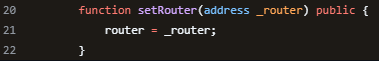 setRouter함수는 Router 주소를 변경하는 역할을 한다. 이 Router 주소는 DcntEth 토큰의 mint 함수와 burn 함수에 대한 권한을 결정한다.